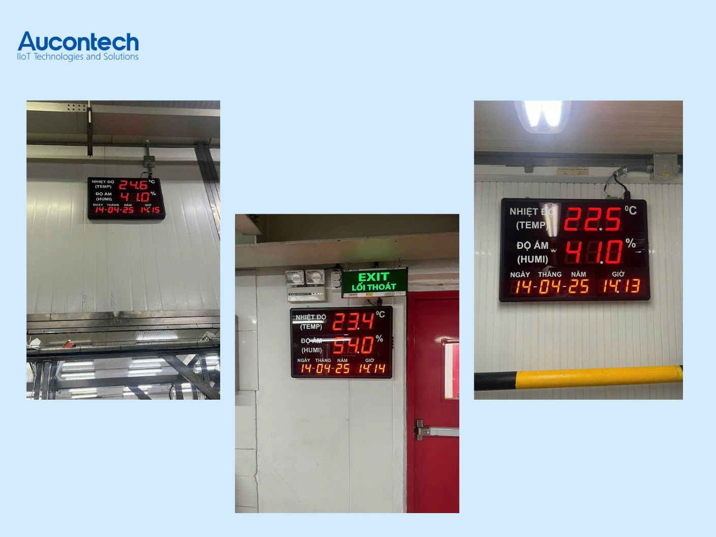 In addition to remote monitoring software, Aucontech’s solution supports LED display boards that show real-time temperature, humidity, and time.