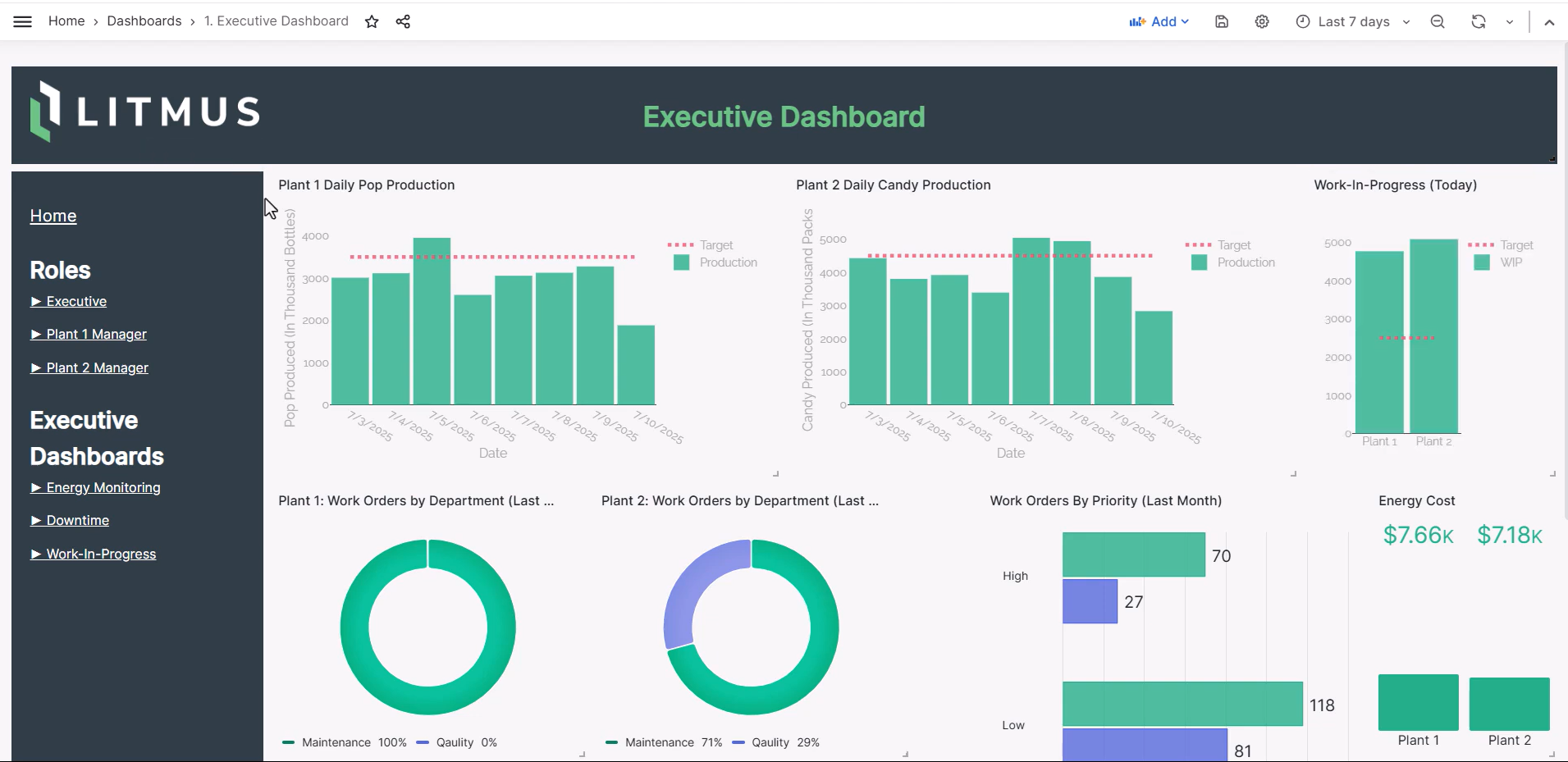 Industrial edge computing platforms like Litmus Edge turn downtime from a vague assumption into clear, real-time insights by breaking down production data in a meaningful way, giving you two distinct yet tightly connected perspectives: what’s happening on the shop floor and how it impacts overall business performance.